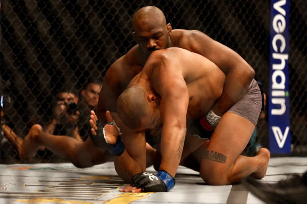 Frankly, Jones made the whole thing look easy. He took Gann down, backed him up against the cage, and locked in a chokehold. It was unorthodox; Gane seemed safe. But Jones pressed on and Gane had to tap.
